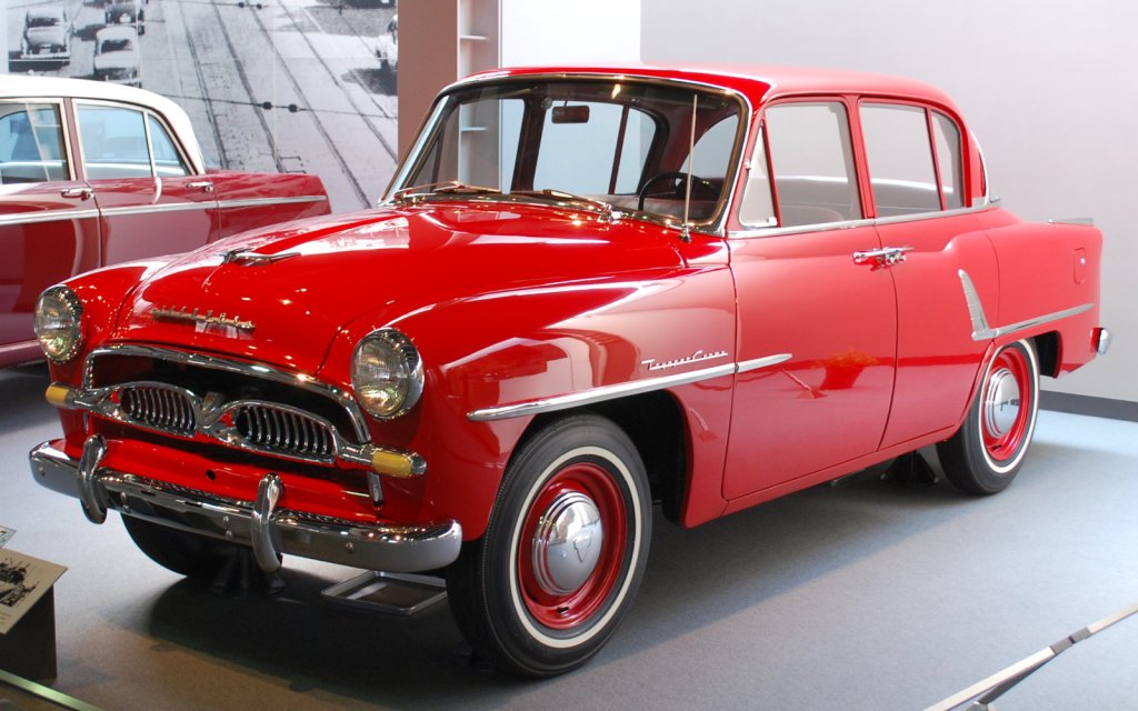The company’s first production passenger car, the Model AA, was launched in 1936 and a separate company, Toyota Motor, was formed the next year. Soon, though, Japan was embroiled in World War 2 and the country’s auto industry shifted production to help with the war effort. The war left Toyota a battered company. Production was tightly restricted, materials were in short supply and one of its factories had been bombed at the war’s end. In its aftermath, though, Toyota began making the trucks. The company believed Japan would need to rebuild itself. Toyota also got a big break in 1950 when the U.S. Army placed a large order for trucks needed in the Korean War. Toyota almost doubled monthly production from 650 vehicles to 1000 vehicles. Slowly, Toyota remade itself, but it realized it had to expand beyond Japan if it wanted to survive and grow over the long term. And to do that. The automaker looked to the massive and fast growing market in the United States. The cars in 1950s America is best known for our massive vehicles, such as the 1957 Chevrolet Bel Air and the 1958 Ford Fairlane Skyliner. But Toyota executives noticed sales of compact cars were growing and just about all of them were European. The company figured there was an opportunity for its own relatively small vehicle. The Toyopet Crown,